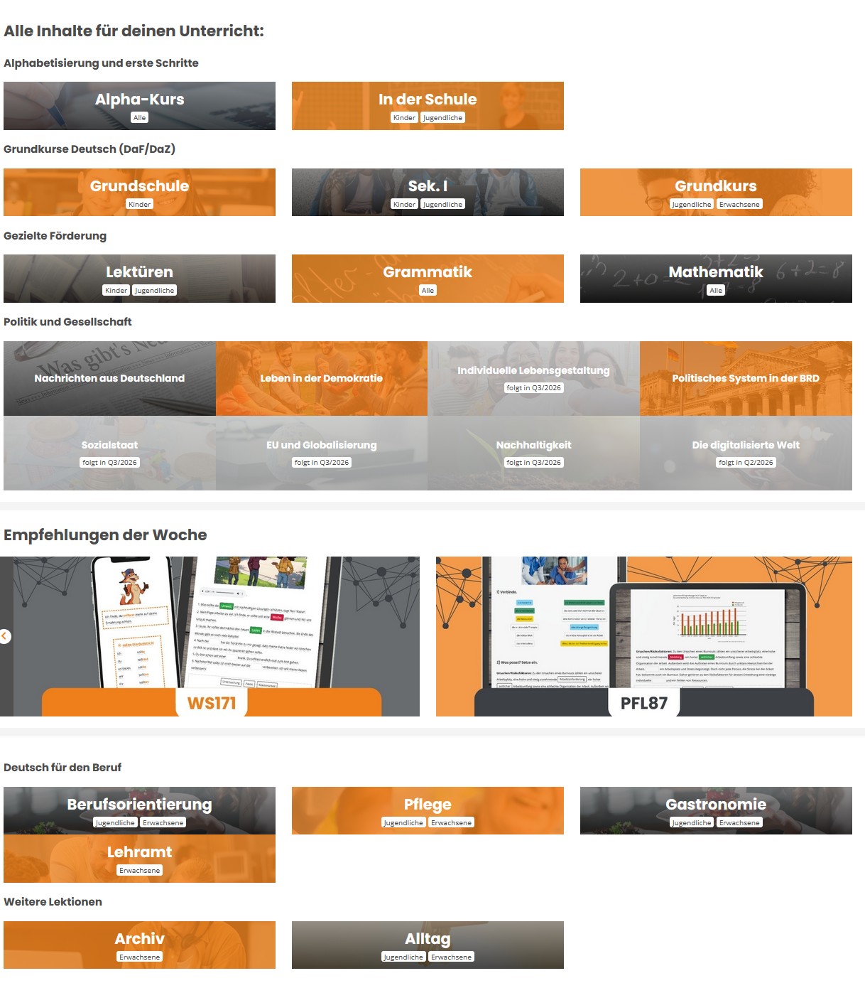 Mit Deutschfuchs findest du mühelos passende Themen und Lektionen für jede Altersgruppe – egal ob Grundschüler:innen, Jugendliche, Berufsschüler:innen oder Erwachsene. So kannst du gezielt und flexibel unterrichten!